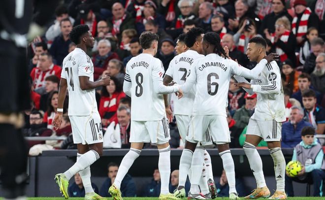 下半场易边再战。第55分钟,阿诺德受伤被换下场,劳尔-阿森西奥替补上场。4分钟后,姆巴佩又进球了!姆巴佩在禁区外轰出一脚世界波,皮球钻入球门左侧。姆巴佩真是踢疯了,独造3球,包括2进球1助攻。第81分钟,巴尔韦德禁区弧顶远射,被扑了出去。最终,皇马3-0横扫毕尔巴鄂竞技。